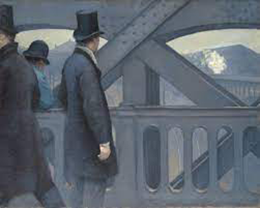 Le pont de l'Europe (Image 3 ci-dessous) illustre l'essor urbain naissant : un homme regarde la fumée blanche d'un train qui déroule un film de vitesse et de mouvement. Je rapproche cette Peinture de Gustave Caillebotte avec Loin d'eux (Image 4 ci-dessous) où le mouvement résulte de la composition de morceaux de films d'un wagon de métro. Dans cette création, je rêve de Peinture d'après le Cinéma... Cinéma qui s'est tant inspiré de la Peinture.