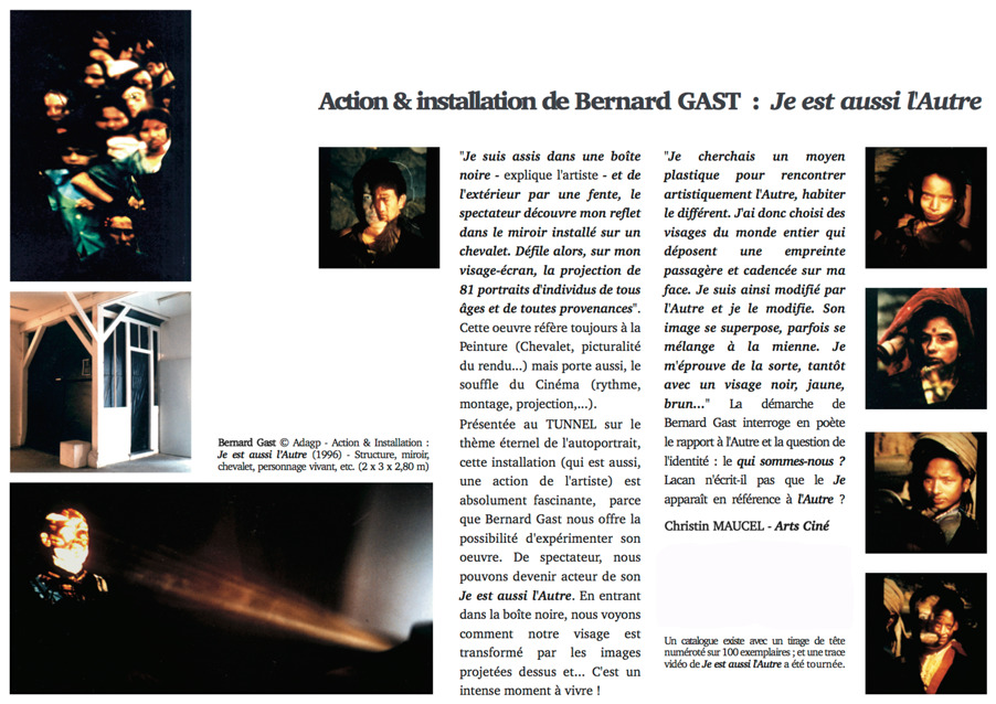 This energy – both practical and theoretical – liberates a unique way of creating, a singular style... A discovery that Bernard Gast theorizes and condenses as follows: "I paint with the 35 mm film of Cinema". His "visuals" suggest all the historical ideas and forms of Painting in particular, and art in general (Abstract, Kineticism, New Figuration, Pop Art, Surrealism, Photojournalism, Poetic Realism, New Wave cinema, etc).